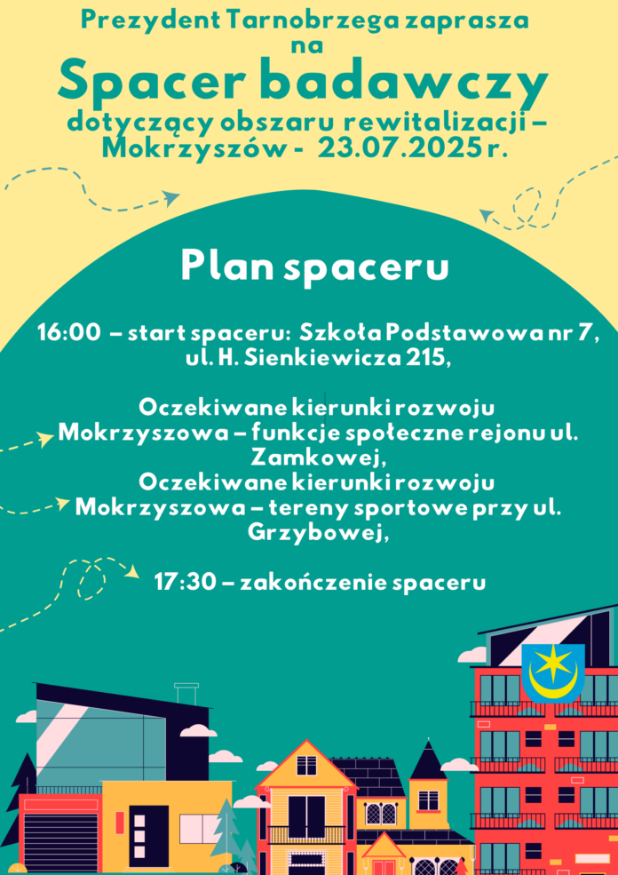 Spacer odbędzie się z udziałem eksperta Instytutu Badawczego IPC z Wrocławia i przedstawicieli Urzędu Miasta Tarnobrzega. Ma on na celu wyznaczenie miejsc i elementów przestrzeni wymagających interwencji, a także badanie odczuć i potrzeb dotyczących różnych aspektów zagospodarowania przestrzennego.