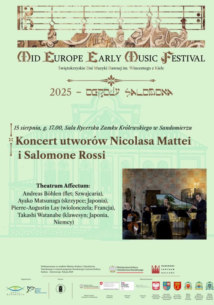 W związku z odbywającym się już po raz szósty festiwalem Mid Europe Early Music Festival – Świętokrzyskie Dni Muzyki Dawnej, Muzeum Zamkowe w Sandomierzu zaprasza na wyjątkowy koncert zespołu Theatrum Affectuum, łączącego duchowość baroku z tradycją żydowską.