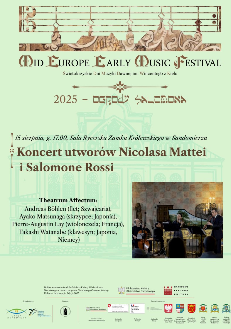 Wydarzenie zostało dofinansowane ze środków Ministra Kultury i Dziedzictwa Narodowego w ramach programu Narodowego Centrum Kultury: Kultura – Interwencje. Edycja 2025, Projekt: Świętokrzyskie Dialogi Muzyczne: włoski barok
