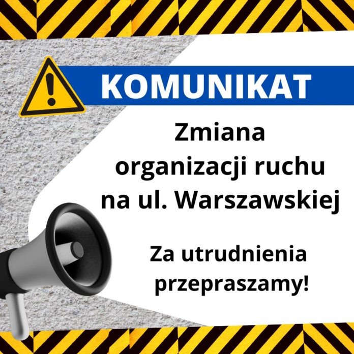 Od dnia 17.09.2025 r. od godziny 7:00 do ODWOŁANIA zostanie wprowadzony ruch wahadłowy za pomocą sygnalizacji świetlnej na odcinku ulicy Warszawskiej na osiedlu Wielowieś.