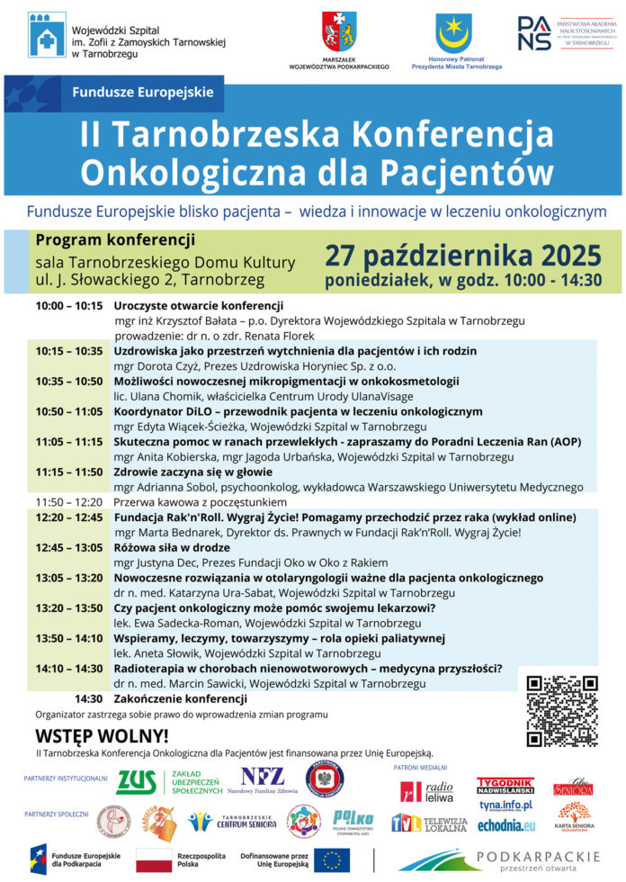 Program konferencji obejmuje szerokie spektrum tematów ważnych dla pacjentów onkologicznych i ich bliskich – od profilaktyki i leczenia, po wsparcie psychologiczne i pielęgnację w trakcie terapii. Podczas wydarzenia eksperci podzielą się swoją wiedzą, doświadczeniem i dobrymi praktykami, które mogą realnie pomóc w codziennym życiu z chorobą nowotworową.