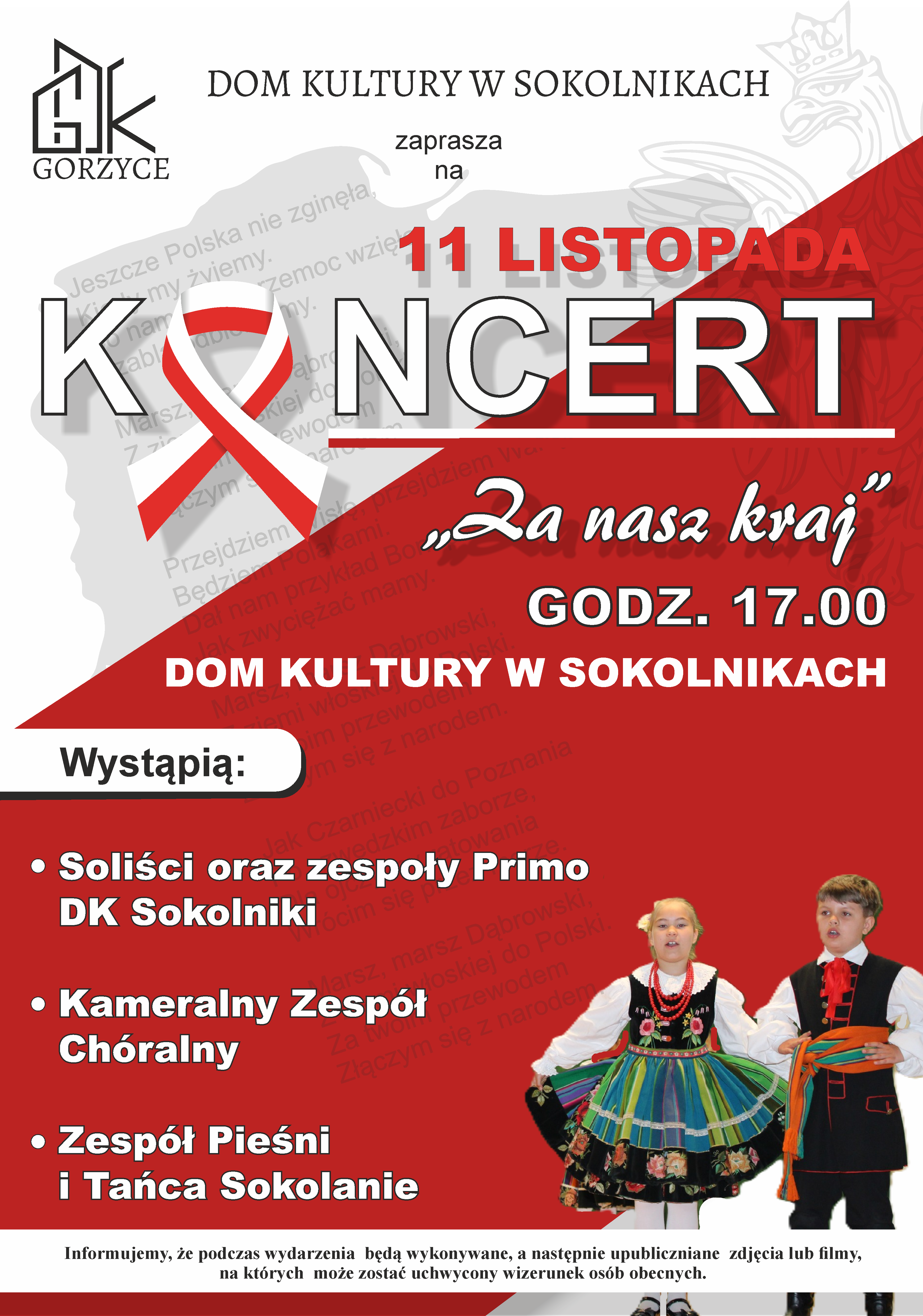 Koncert odbędzie się 11 listopada 2025r. o godz. 17:00 w sali widowiskowej DK Sokolniki.