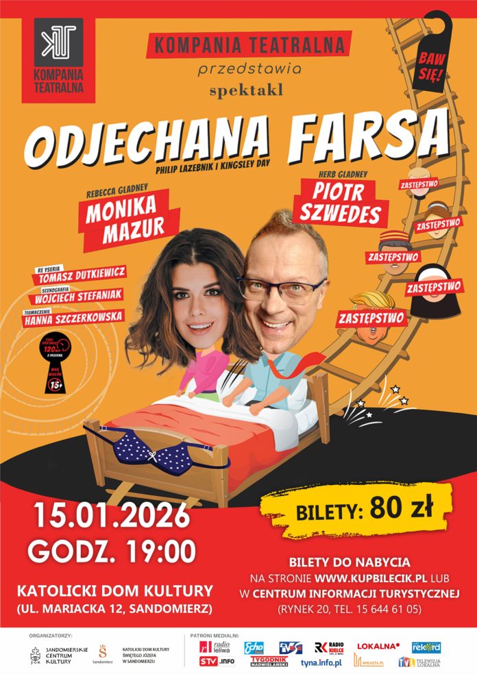 Już 15 stycznia 2026 r. o godz. 19:00 w Katolickim Domu Kultury Świętego Józefa w Sandomierzu wystąpi Kompania Teatralna ze spektaklem „Odjechana farsa” – komedią, po której długo nie przestaniesz się śmiać!
