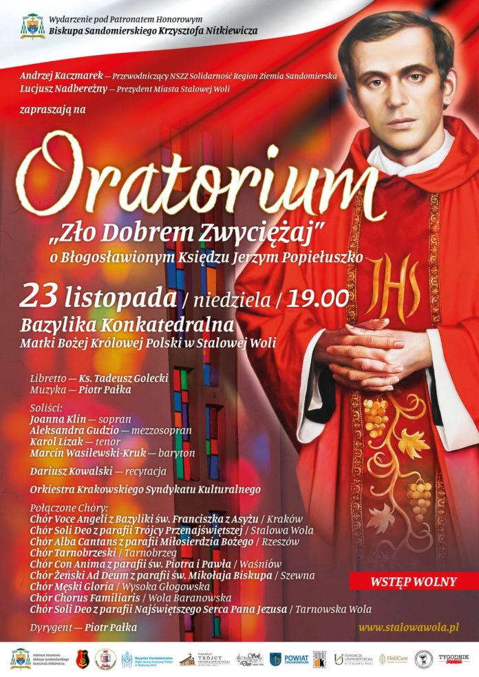 Już w najbliższą niedzielę ogólnopolska premiera oratorium “Zło Dobrem Zwyciężaj“, które poświęcone jest błogosławionemu księdzu Jerzemu Popiełuszce. Wśród wykonawców zaprezentuje się Chór Tarnobrzeski.