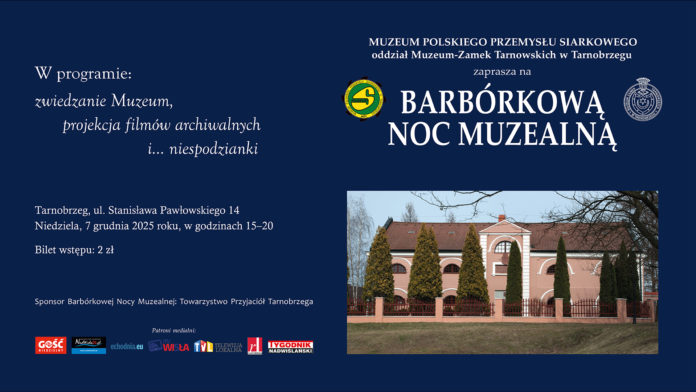 7 grudnia w Muzeum Polskiego Przemysłu Siarkowego w Tarnobrzegu Barbórkowa Noc Muzealna.