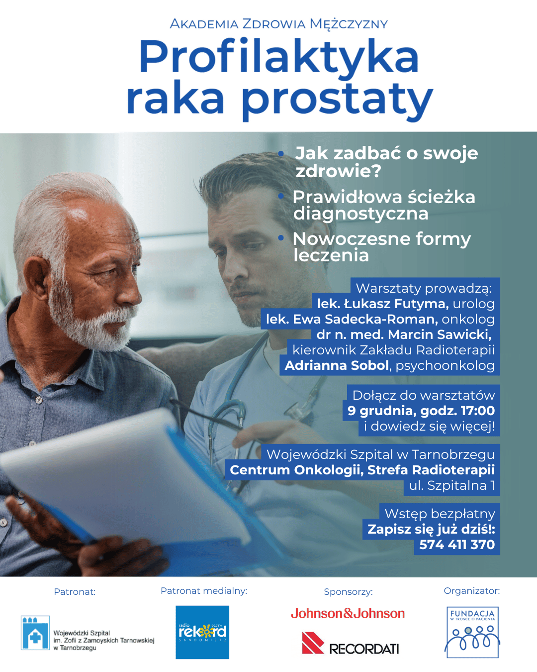 Fundacja “W trosce o pacjenta”, we współpracy z Wojewódzkim Szpitalem w Tarnobrzegu, organizuje w Tarnobrzegu bezpłatne warsztaty w ramach ogólnopolskiego projektu Akademia Zdrowia Mężczyzny.