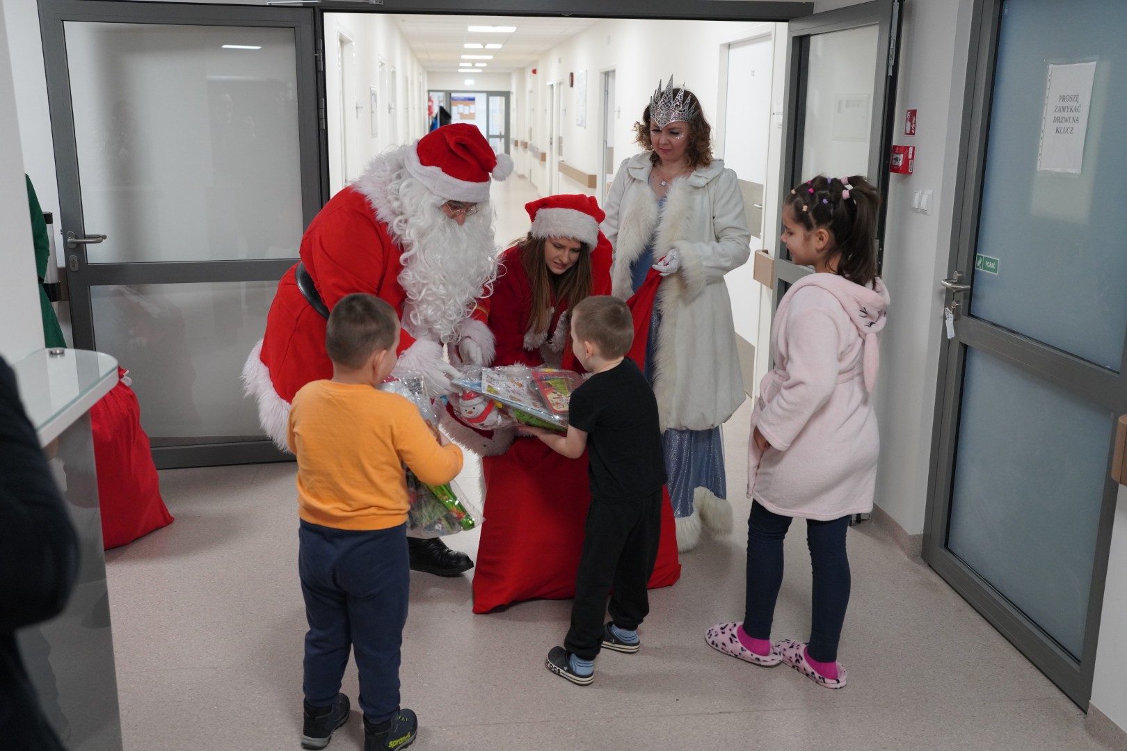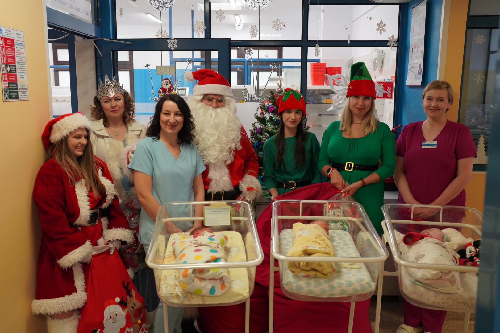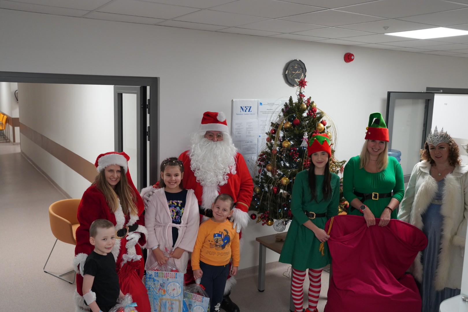 W tym roku Brygada Świętego Mikołaja była liczniejsza niż w latach ubiegłych. Do Mikołaja i Śnieżynki dołączyły dwa Elfy oraz Pani Mikołajowa. W te role wcielili się wolontariusze, dzięki którym na szpitalnych korytarzach zrobiło się jeszcze bardziej kolorowo i radośnie.