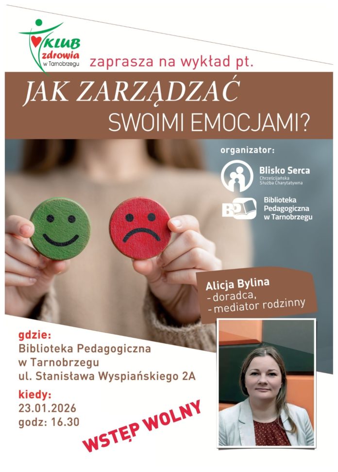 Biblioteka Pedagogiczna i Klub Zdrowia w Tarnobrzegu zapraszają na wykład, który poprowadzi Alicja Bylina – doradca i mediator rodzinny.