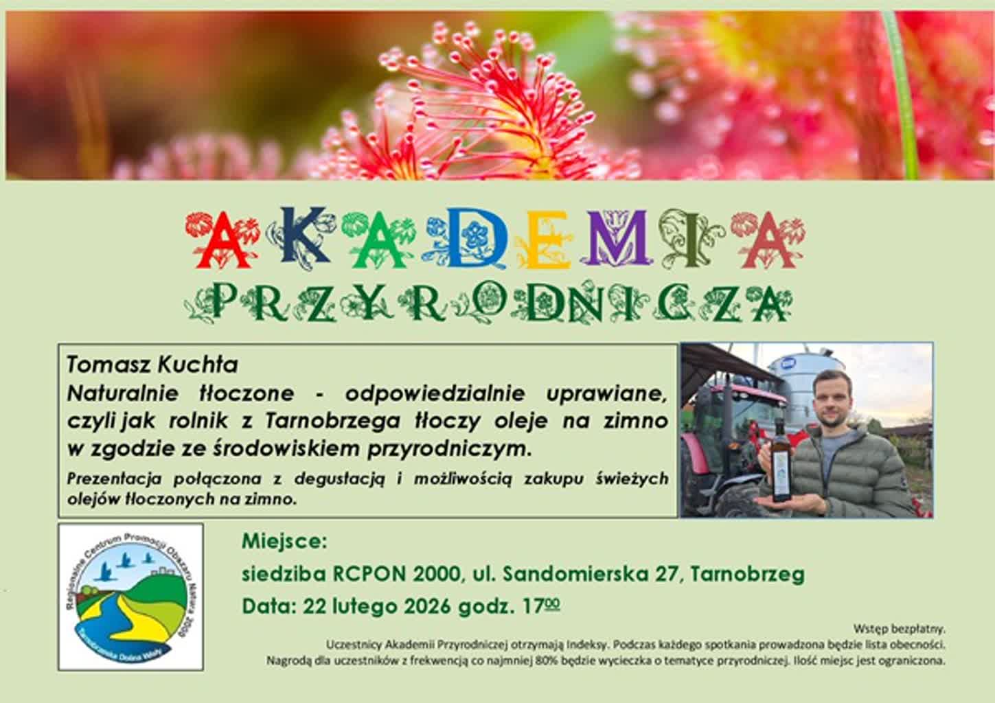 Spotkanie  z rolnikiem, Tomaszem Kuchtą,  który produkuje oleje tłoczone na zimno, zainauguruje kolejną edycję tarnobrzeskiej Akademii Przyrodniczej.