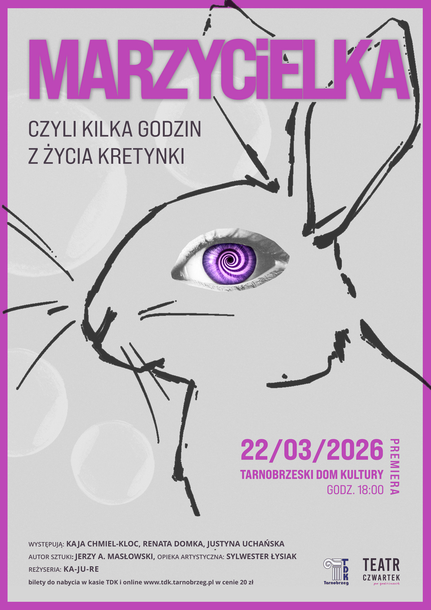 To będzie kameralny, nietypowy spektakl. Będzie o kobietach, o relacjach, o marzeniach i poszukiwaniu sensu, a wszystko z humorem i groteską. Tarnobrzeski Dom Kultury zaprasza na spektakl pt. „Marzycielka, czyli kilka godzin z życia kretynki” wg sztuki autorstwa Jerzego Andrzeja Masłowskiego. Premiera odbędzie się podczas Dni Teatru 22 marca.