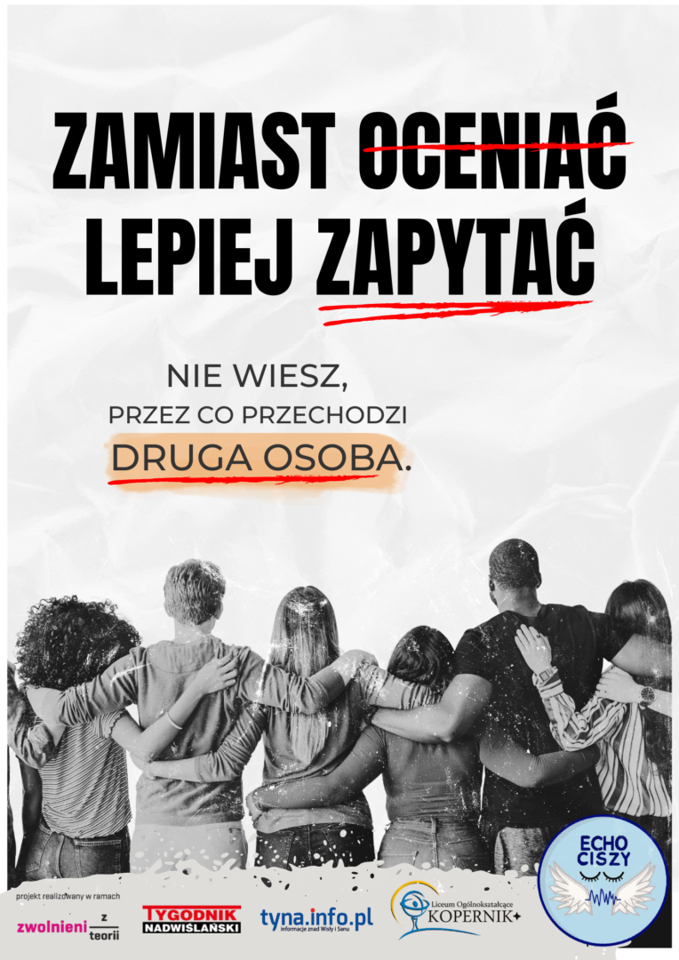 Uczniowie Liceum Ogólnokształcącego im. Mikołaja Kopernika w Tarnobrzegu realizują projekt „Echo Ciszy”, którego celem jest zwrócenie uwagi na problem hejtu, przemocy słownej i wykluczenia wśród młodych ludzi. W ramach inicjatywy organizowane są spotkania edukacyjne dla uczniów klas VII i VIII szkół podstawowych.