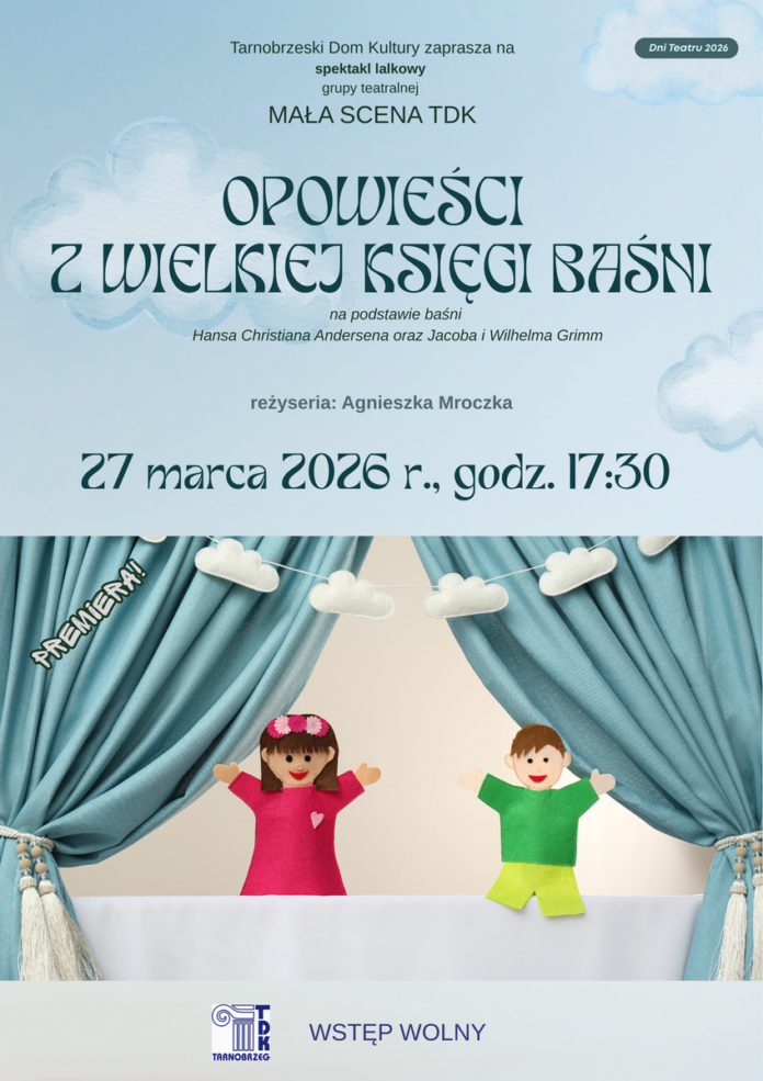 Tarnobrzeski Dom Kultury zaprasza na premierę grupy teatralnej Mała Scena TDK. Będzie to spektakl lalkowy „Opowieści z wielkiej księgi baśni”.