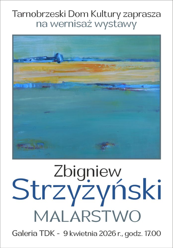 Wystawę prac Zbigniewa Strzyżyńskiego w Galerii TDK można będzie oglądać do połowy maja. Wernisaż odbędzie się 9 kwietnia o godz. 17:00 w Tarnobrzeskim Domu Kultury. Wstęp jest wolny.